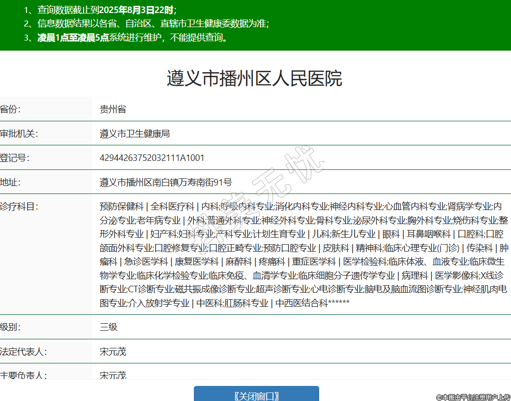 省份:貴州省審批機(jī)關(guān):遵義市衛(wèi)生健康局登記號(hào):42944263752032111A1001地址:遵義市播州區(qū)南白鎮(zhèn)萬(wàn)壽南街91號(hào)診療科目:預(yù)防保健科 | 全科醫(yī)療科 | 內(nèi)科;呼吸內(nèi)科專業(yè);消化內(nèi)科專業(yè);神經(jīng)內(nèi)科專業(yè);心血管內(nèi)科專業(yè);腎病學(xué)專業(yè);內(nèi)分泌專業(yè);老年病專業(yè) | 外科;普通外科專業(yè);神經(jīng)外科專業(yè);骨科專業(yè);泌尿外科專業(yè);胸外科專業(yè);燒傷科專業(yè);整形外科專業(yè) | 婦產(chǎn)科;婦科專業(yè);產(chǎn)科專業(yè);計(jì)劃生育專業(yè) | 兒科;新生兒專業(yè) | 眼科 | 耳鼻咽喉科 | 口腔科;口腔頜面外科專業(yè);口腔修復(fù)專業(yè);口腔正畸專業(yè);預(yù)防口腔專業(yè) | 皮膚科 | 精神科;臨床心理專業(yè)(門診) | 傳染科 | 腫瘤科 | 急診醫(yī)學(xué)科 | 康復(fù)醫(yī)學(xué)科 | 麻醉科 | 疼痛科 | 重癥醫(yī)學(xué)科 | 醫(yī)學(xué)檢驗(yàn)科;臨床體液、血液專業(yè);臨床微生物學(xué)專業(yè);臨床化學(xué)檢驗(yàn)專業(yè);臨床免疫、血清學(xué)專業(yè);臨床細(xì)胞分子遺傳學(xué)專業(yè) | 病理科 | 醫(yī)學(xué)影像科;X線診斷專業(yè);CT診斷專業(yè);磁共振成像診斷專業(yè);超聲診斷專業(yè);心電診斷專業(yè);腦電及腦血流圖診斷專業(yè);神經(jīng)肌肉電圖專業(yè);介入放射學(xué)專業(yè) | 中醫(yī)科;肛腸科專業(yè) | 中西醫(yī)結(jié)合科******級(jí)別:三級(jí)法定代表人:宋元茂主要負(fù)責(zé)人:宋元茂執(zhí)業(yè)許可證有效期:2025/02/01 -至- 2040/01/31 -