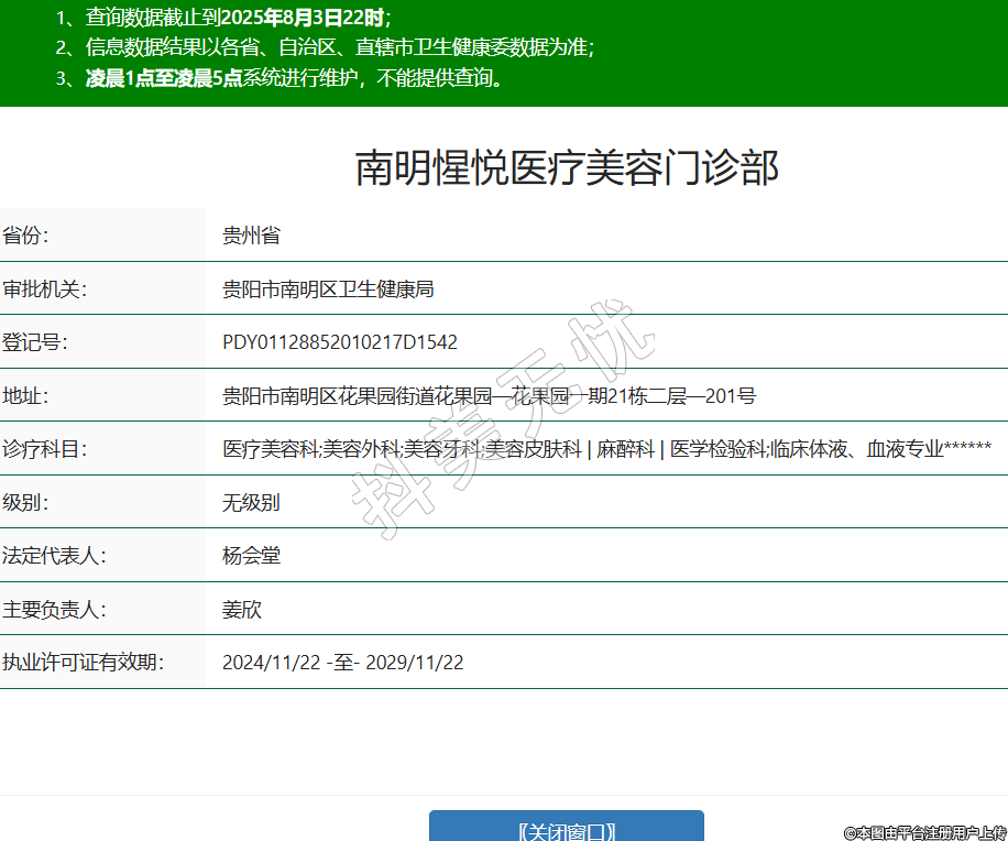 省份:貴州省審批機(jī)關(guān):貴陽(yáng)市南明區(qū)衛(wèi)生健康局登記號(hào):PDY01128852010217D1542地址:貴陽(yáng)市南明區(qū)花果園街道花果園—花果園一期21棟二層—201號(hào)診療科目:醫(yī)療美容科;美容外科;美容牙科;美容皮膚科 | 麻醉科 | 醫(yī)學(xué)檢驗(yàn)科;臨床體液、血液專業(yè)******級(jí)別:無(wú)級(jí)別法定代表人:楊會(huì)堂主要負(fù)責(zé)人:姜欣執(zhí)業(yè)許可證有效期:2024/11/22 -至- 2029/11/22 -