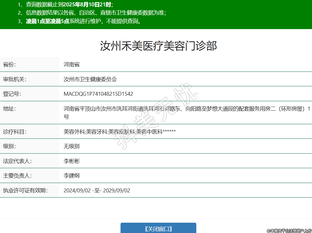 省份:河南省審批機(jī)關(guān):汝州市衛(wèi)生健康委員會登記號:MACDQG1P741048215D1542地址:河南省平頂山市汝州市洗耳河街道洗耳河沿河路東、向陽路至夢想大道段的配套服務(wù)用房二(環(huán)形房屋)1號診療科目:美容外科;美容牙科;美容皮膚科;美容中醫(yī)科******級別:無級別法定代表人:李彬彬主要負(fù)責(zé)人:李建綱執(zhí)業(yè)許可證有效期:2024/09/02 -至- 2029/09/02 -