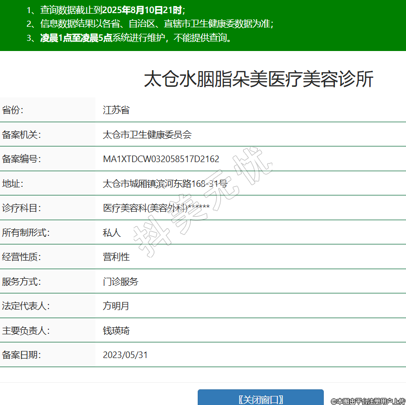 太倉水胭脂朵美醫(yī)療美容診所,診療科目:醫(yī)療美容科(美容外科)******