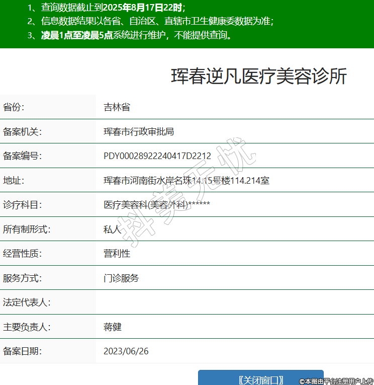 琿春逆凡醫(yī)療美容診所,診療科目:醫(yī)療美容科(美容外科)******
