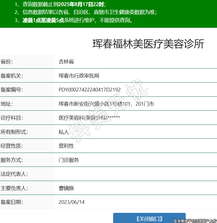 琿春福林美醫(yī)療美容診所,診療科目:醫(yī)療美容科(美容外科)******