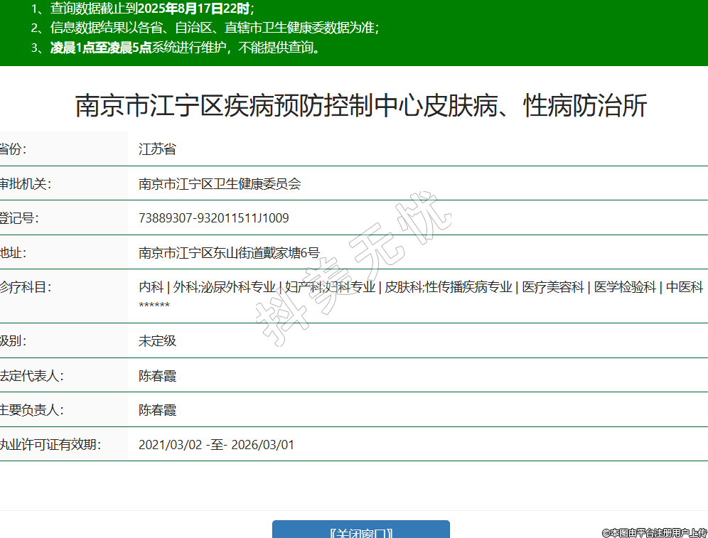 南京市江寧區(qū)疾病預(yù)防控制中心皮膚病、性病防治所醫(yī)療美容