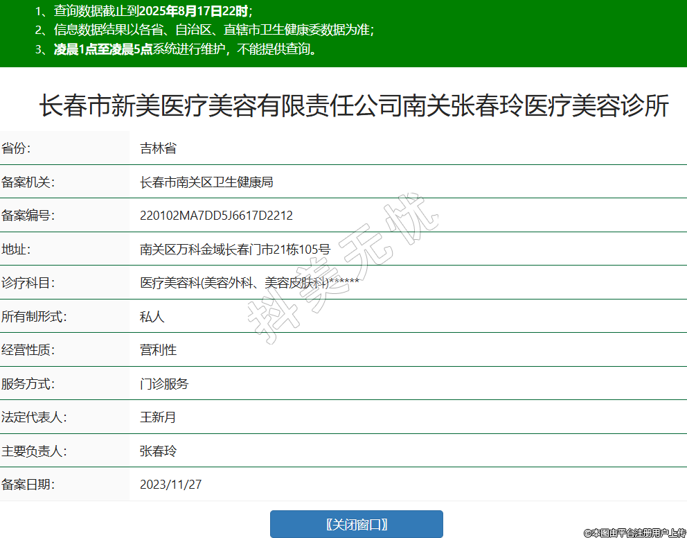 長(zhǎng)春市新美醫(yī)療美容有限責(zé)任公司南關(guān)張春玲醫(yī)療美容診所
