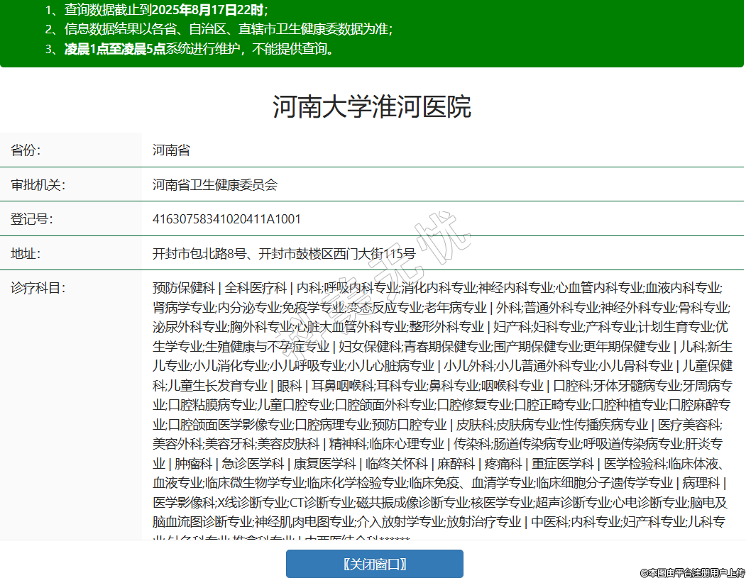 省份:河南省審批機(jī)關(guān):河南省衛(wèi)生健康委員會登記號:41630758341020411A1001地址:開封市包北路8號、開封市鼓樓區(qū)西門大街115號診療科目:預(yù)防保健科 | 全科醫(yī)療科 | 內(nèi)科;呼吸內(nèi)科專業(yè);消化內(nèi)科專業(yè);神經(jīng)內(nèi)科專業(yè);心血管內(nèi)科專業(yè);血液內(nèi)科專業(yè);腎病學(xué)專業(yè);內(nèi)分泌專業(yè);免疫學(xué)專業(yè);變態(tài)反應(yīng)專業(yè);老年病專業(yè) | 外科;普通外科專業(yè);神經(jīng)外科專業(yè);骨科專業(yè);泌尿外科專業(yè);胸外科專業(yè);心臟大血管外科專業(yè);整形外科專業(yè) | 婦產(chǎn)科;婦科專業(yè);產(chǎn)科專業(yè);計劃生育專業(yè);優(yōu)生學(xué)專業(yè);生殖健康與不孕癥專業(yè) | 婦女保健科;青春期保健專業(yè);圍產(chǎn)期保健專業(yè);更年期保健專業(yè) | 兒科;新生兒專業(yè);小兒消化專業(yè);小兒呼吸專業(yè);小兒心臟病專業(yè) | 小兒外科;小兒普通外科專業(yè);小兒骨科專業(yè) | 兒童保健科;兒童生長發(fā)育專業(yè) | 眼科 | 耳鼻咽喉科;耳科專業(yè);鼻科專業(yè);咽喉科專業(yè) | 口腔科;牙體牙髓病專業(yè);牙周病專業(yè);口腔粘膜病專業(yè);兒童口腔專業(yè);口腔頜面外科專業(yè);口腔修復(fù)專業(yè);口腔正畸專業(yè);口腔種植專業(yè);口腔麻醉專業(yè);口腔頜面醫(yī)學(xué)影像專業(yè);口腔病理專業(yè);預(yù)防口腔專業(yè) | 皮膚科;皮膚病專業(yè);性傳播疾病專業(yè) | 醫(yī)療美容科;美容外科;美容牙科;美容皮膚科 | 精神科;臨床心理專業(yè) | 傳染科;腸道傳染病專業(yè);呼吸道傳染病專業(yè);肝炎專業(yè) | 腫瘤科 | 急診醫(yī)學(xué)科 | 康復(fù)醫(yī)學(xué)科 | 臨終關(guān)懷科 | 麻醉科 | 疼痛科 | 重癥醫(yī)學(xué)科 | 醫(yī)學(xué)檢驗(yàn)科;臨床體液、血液專業(yè);臨床微生物學(xué)專業(yè);臨床化學(xué)檢驗(yàn)專業(yè);臨床免疫、血清學(xué)專業(yè);臨床細(xì)胞分子遺傳學(xué)專業(yè) | 病理科 | 醫(yī)學(xué)影像科;X線診斷專業(yè);CT診斷專業(yè);磁共振成像診斷專業(yè);核醫(yī)學(xué)專業(yè);超聲診斷專業(yè);心電診斷專業(yè);腦電及腦血流圖診斷專業(yè);神經(jīng)肌肉電圖專業(yè);介入放射學(xué)專業(yè);放射治療專業(yè) | 中醫(yī)科;內(nèi)科專業(yè);婦產(chǎn)科專業(yè);兒科專業(yè);針灸科專業(yè);推拿科專業(yè) | 中西醫(yī)結(jié)合科******級別:三級法定代表人:左克強(qiáng)主要負(fù)責(zé)人:***執(zhí)業(yè)許可證有效期:2024/10/30 -至- 2033/04/08 -