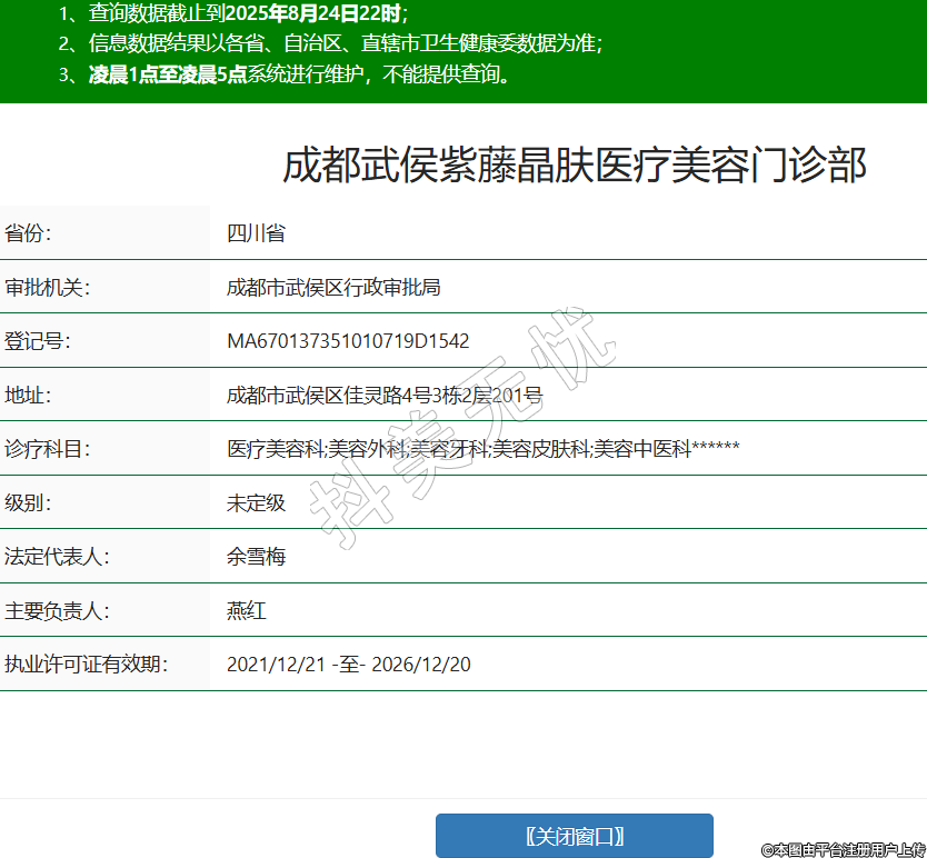 成都武侯紫藤晶膚醫(yī)療美容門診部,診療科目:醫(yī)療美容科;美容外科;美容牙科;美容皮膚科;美容中醫(yī)科******