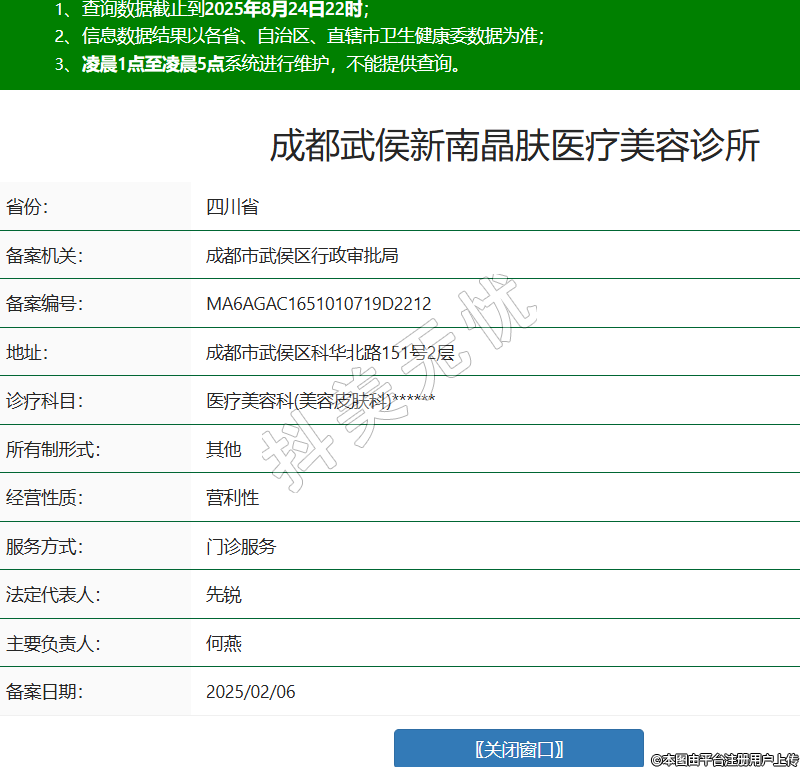 成都武侯新南晶膚醫(yī)療美容診所,診療科目:醫(yī)療美容科(美容皮膚科)******