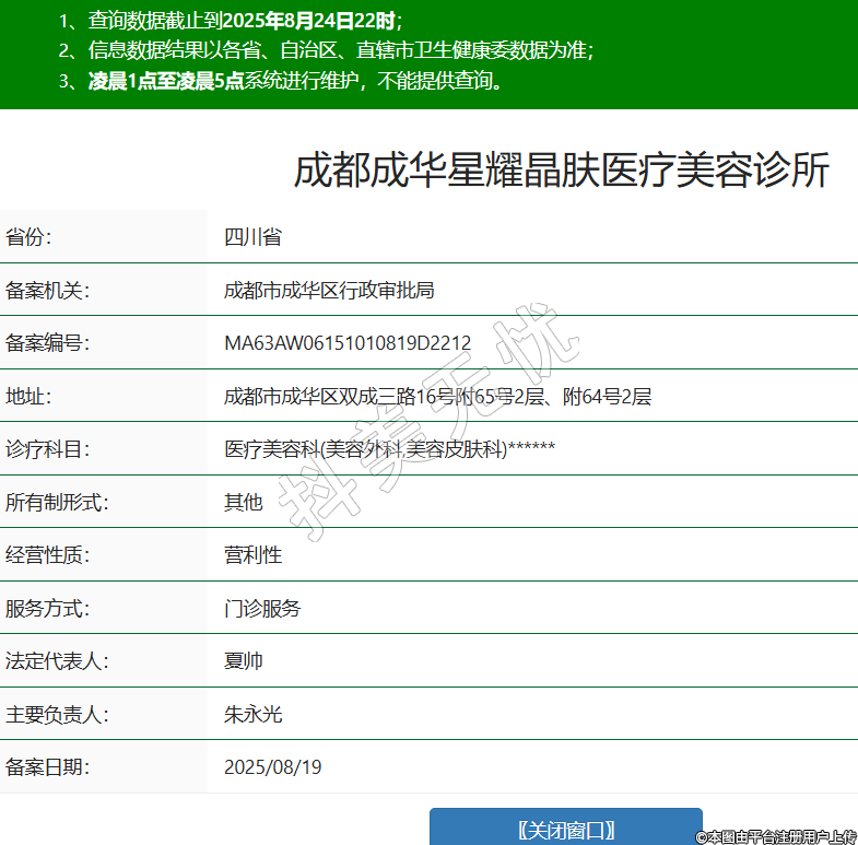 成都成華星耀晶膚醫(yī)療美容診所,診療科目:醫(yī)療美容科(美容外科,美容皮膚科)******