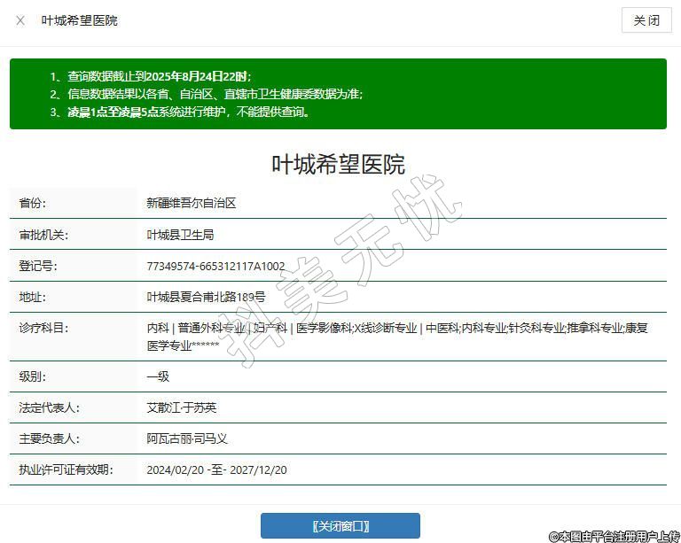 葉城希望醫(yī)院成立于2020年12月7日,至今要已有1年,位于新疆喀什地區(qū)葉城縣夏合甫北路189號,法定代表人為艾散江·于蘇英,經(jīng)營范圍為:內(nèi)科、外科、婦產(chǎn)科、眼科、中醫(yī)科、檢驗科、B超、心電圖、放射科(依法須經(jīng)批準(zhǔn)的項目,經(jīng)相關(guān)部門批準(zhǔn)后方可開展經(jīng)營活動)
