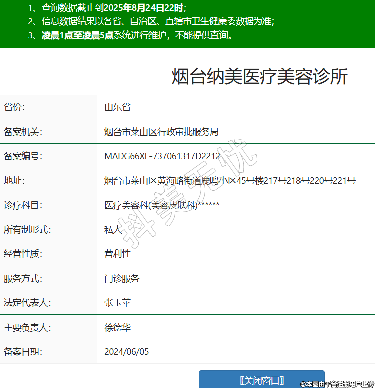 省份:山東省備案機(jī)關(guān):煙臺(tái)市萊山區(qū)行政審批服務(wù)局備案編號(hào):MADG66XF-737061317D2212地址:煙臺(tái)市萊山區(qū)黃海路街道鹿鳴小區(qū)45號(hào)樓217號(hào)218號(hào)220號(hào)221號(hào)診療科目:醫(yī)療美容科(美容皮膚科)******所有制形式:私人經(jīng)營性質(zhì):營利性服務(wù)方式:門診服務(wù)法定代表人:張玉蘋主要負(fù)責(zé)人:徐德華備案日期:2024/06/05 -