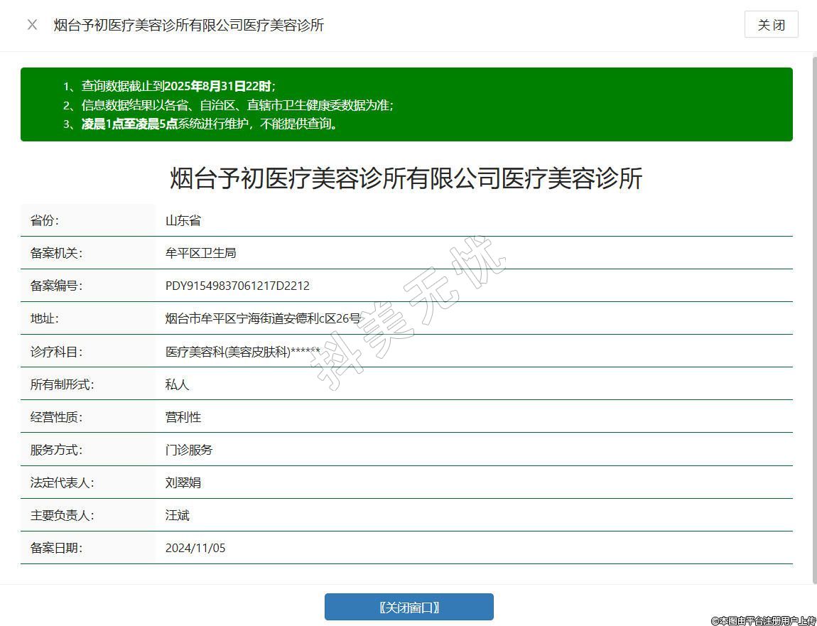 煙臺(tái)予初醫(yī)療美容診所有限公司醫(yī)療美容診所