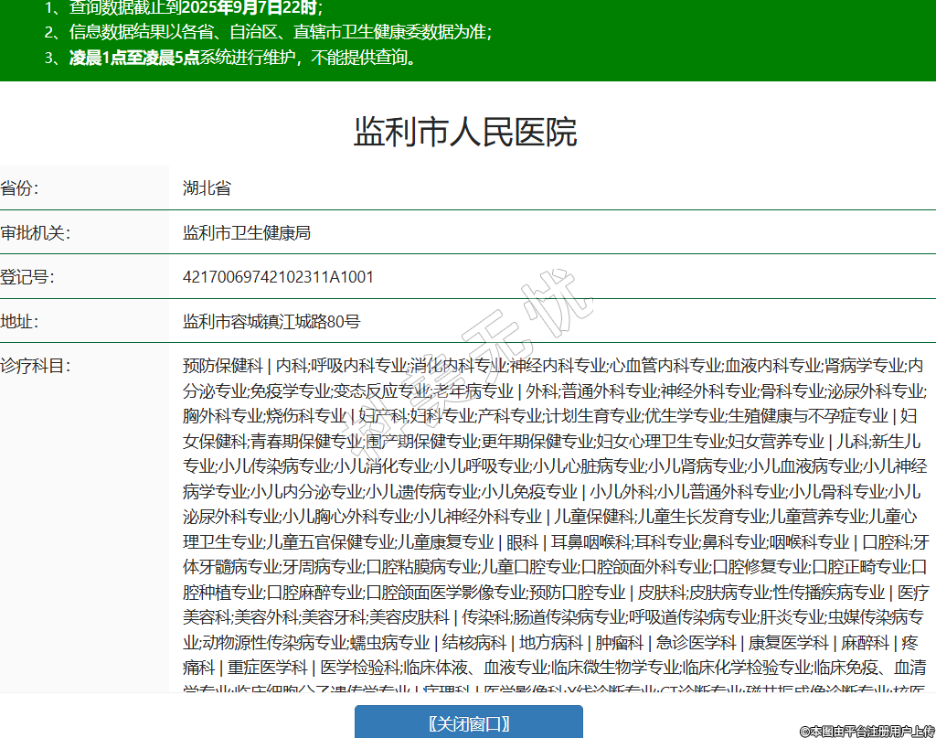 省份:湖北省審批機關(guān):監(jiān)利市衛(wèi)生健康局登記號:42170069742102311A1001地址:監(jiān)利市容城鎮(zhèn)江城路80號診療科目:預(yù)防保健科 | 內(nèi)科;呼吸內(nèi)科專業(yè);消化內(nèi)科專業(yè);神經(jīng)內(nèi)科專業(yè);心血管內(nèi)科專業(yè);血液內(nèi)科專業(yè);腎病學(xué)專業(yè);內(nèi)分泌專業(yè);免疫學(xué)專業(yè);變態(tài)反應(yīng)專業(yè);老年病專業(yè) | 外科;普通外科專業(yè);神經(jīng)外科專業(yè);骨科專業(yè);泌尿外科專業(yè);胸外科專業(yè);燒傷科專業(yè) | 婦產(chǎn)科;婦科專業(yè);產(chǎn)科專業(yè);計劃生育專業(yè);優(yōu)生學(xué)專業(yè);生殖健康與不孕癥專業(yè) | 婦女保健科;青春期保健專業(yè);圍產(chǎn)期保健專業(yè);更年期保健專業(yè);婦女心理衛(wèi)生專業(yè);婦女營養(yǎng)專業(yè) | 兒科;新生兒專業(yè);小兒傳染病專業(yè);小兒消化專業(yè);小兒呼吸專業(yè);小兒心臟病專業(yè);小兒腎病專業(yè);小兒血液病專業(yè);小兒神經(jīng)病學(xué)專業(yè);小兒內(nèi)分泌專業(yè);小兒遺傳病專業(yè);小兒免疫專業(yè) | 小兒外科;小兒普通外科專業(yè);小兒骨科專業(yè);小兒泌尿外科專業(yè);小兒胸心外科專業(yè);小兒神經(jīng)外科專業(yè) | 兒童保健科;兒童生長發(fā)育專業(yè);兒童營養(yǎng)專業(yè);兒童心理衛(wèi)生專業(yè);兒童五官保健專業(yè);兒童康復(fù)專業(yè) | 眼科 | 耳鼻咽喉科;耳科專業(yè);鼻科專業(yè);咽喉科專業(yè) | 口腔科;牙體牙髓病專業(yè);牙周病專業(yè);口腔粘膜病專業(yè);兒童口腔專業(yè);口腔頜面外科專業(yè);口腔修復(fù)專業(yè);口腔正畸專業(yè);口腔種植專業(yè);口腔麻醉專業(yè);口腔頜面醫(yī)學(xué)影像專業(yè);預(yù)防口腔專業(yè) | 皮膚科;皮膚病專業(yè);性傳播疾病專業(yè) | 醫(yī)療美容科;美容外科;美容牙科;美容皮膚科 | 傳染科;腸道傳染病專業(yè);呼吸道傳染病專業(yè);肝炎專業(yè);蟲媒傳染病專業(yè);動物源性傳染病專業(yè);蠕蟲病專業(yè) | 結(jié)核病科 | 地方病科 | 腫瘤科 | 急診醫(yī)學(xué)科 | 康復(fù)醫(yī)學(xué)科 | 麻醉科 | 疼痛科 | 重癥醫(yī)學(xué)科 | 醫(yī)學(xué)檢驗科;臨床體液、血液專業(yè);臨床微生物學(xué)專業(yè);臨床化學(xué)檢驗專業(yè);臨床免疫、血清學(xué)專業(yè);臨床細胞分子遺傳學(xué)專業(yè) | 病理科 | 醫(yī)學(xué)影像科;X線診斷專業(yè);CT診斷專業(yè);磁共振成像診斷專業(yè);核醫(yī)學(xué)專業(yè);超聲診斷專業(yè);心電診斷專業(yè);腦電及腦血流圖診斷專業(yè);神經(jīng)肌肉電圖專業(yè);介入放射學(xué)專業(yè);放射治療專業(yè) | 中醫(yī)科;內(nèi)科專業(yè);骨傷科專業(yè);肛腸科專業(yè);老年病科專業(yè);針灸科專業(yè);推拿科專業(yè);康復(fù)醫(yī)學(xué)專業(yè) | 中西醫(yī)結(jié)合科******級別:二級法定代表人:鄧志波主要負責人:鄧志波執(zhí)業(yè)許可證有效期:2017/06/14 -至- 2032/06/13 -
