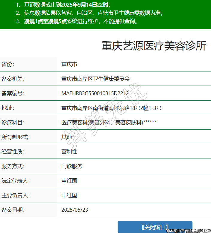 省份:重慶市備案機(jī)關(guān):重慶市南岸區(qū)衛(wèi)生健康委員會備案編號:MAEHRB3G550010815D2212地址:重慶市南岸區(qū)南街道南坪東路18號2幢1-3號診療科目:醫(yī)療美容科(美容外科、美容皮膚科)******所有制形式:其他經(jīng)營性質(zhì):營利性服務(wù)方式:門診服務(wù)法定代表人:申紅國主要負(fù)責(zé)人:申紅國備案日期:2025/05/23 -