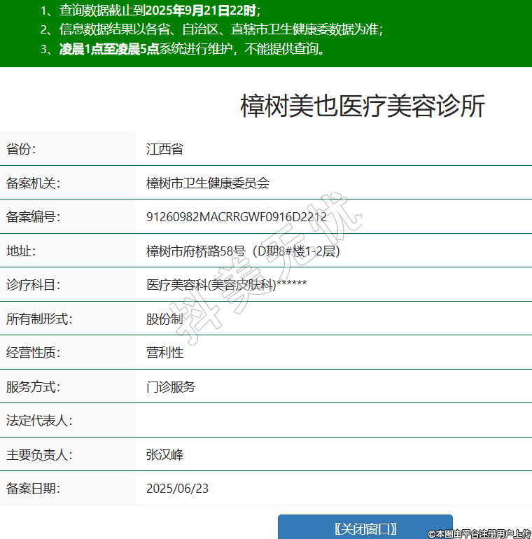 省份:江西省備案機關(guān):樟樹市衛(wèi)生健康委員會備案編號:91260982MACRRGWF0916D2212地址:樟樹市府橋路58號(D期8#樓1-2層)診療科目:醫(yī)療美容科(美容皮膚科)******所有制形式:股份制經(jīng)營性質(zhì):營利性服務(wù)方式:門診服務(wù)法定代表人:主要負責(zé)人:張漢峰備案日期:2025/06/23 -