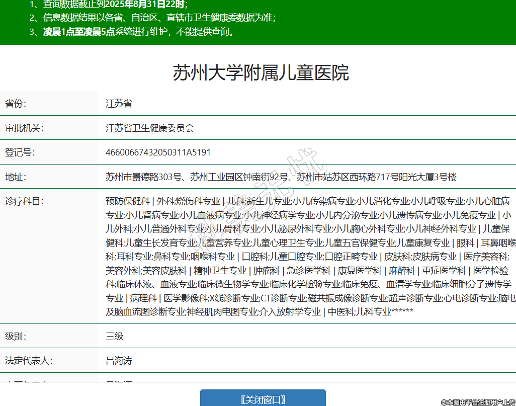 省份:江蘇省審批機關:江蘇省衛(wèi)生健康委員會登記號:46600667432050311A5191地址:蘇州市景德路303號、蘇州工業(yè)園區(qū)鐘南街92號、蘇州市姑蘇區(qū)西環(huán)路717號陽光大廈3號樓診療科目:預防保健科 | 外科;燒傷科專業(yè) | 兒科;新生兒專業(yè);小兒傳染病專業(yè);小兒消化專業(yè);小兒呼吸專業(yè);小兒心臟病專業(yè);小兒腎病專業(yè);小兒血液病專業(yè);小兒神經(jīng)病學專業(yè);小兒內(nèi)分泌專業(yè);小兒遺傳病專業(yè);小兒免疫專業(yè) | 小兒外科;小兒普通外科專業(yè);小兒骨科專業(yè);小兒泌尿外科專業(yè);小兒胸心外科專業(yè);小兒神經(jīng)外科專業(yè) | 兒童保健科;兒童生長發(fā)育專業(yè);兒童營養(yǎng)專業(yè);兒童心理衛(wèi)生專業(yè);兒童五官保健專業(yè);兒童康復專業(yè) | 眼科 | 耳鼻咽喉科;耳科專業(yè);鼻科專業(yè);咽喉科專業(yè) | 口腔科;兒童口腔專業(yè);口腔正畸專業(yè) | 皮膚科;皮膚病專業(yè) | 醫(yī)療美容科;美容外科;美容皮膚科 | 精神衛(wèi)生專業(yè) | 腫瘤科 | 急診醫(yī)學科 | 康復醫(yī)學科 | 麻醉科 | 重癥醫(yī)學科 | 醫(yī)學檢驗科;臨床體液、血液專業(yè);臨床微生物學專業(yè);臨床化學檢驗專業(yè);臨床免疫、血清學專業(yè);臨床細胞分子遺傳學專業(yè) | 病理科 | 醫(yī)學影像科;X線診斷專業(yè);CT診斷專業(yè);磁共振成像診斷專業(yè);超聲診斷專業(yè);心電診斷專業(yè);腦電及腦血流圖診斷專業(yè);神經(jīng)肌肉電圖專業(yè);介入放射學專業(yè) | 中醫(yī)科;兒科專業(yè)******級別:三級法定代表人:呂海濤主要負責人:呂海濤執(zhí)業(yè)許可證有效期:2020/12/09 -至- 2035/12/08 -