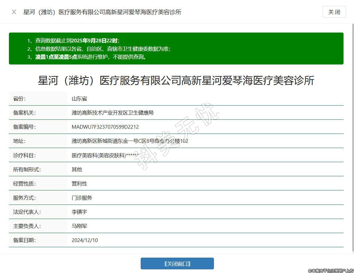 星河(濰坊)醫(yī)療服務(wù)有限公司高新星河愛琴海醫(yī)療美容診所