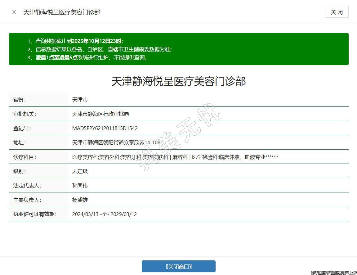 天津靜海悅呈醫(yī)療美容門診部