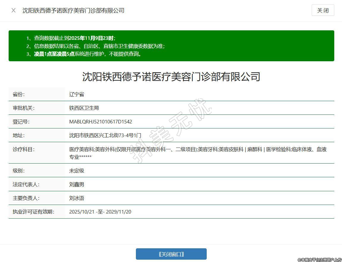 沈陽(yáng)鐵西德予諾醫(yī)療美容門(mén)診部有限公司