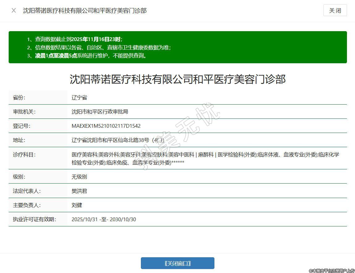 沈陽蒂諾醫(yī)療科技有限公司和平醫(yī)療美容門診部