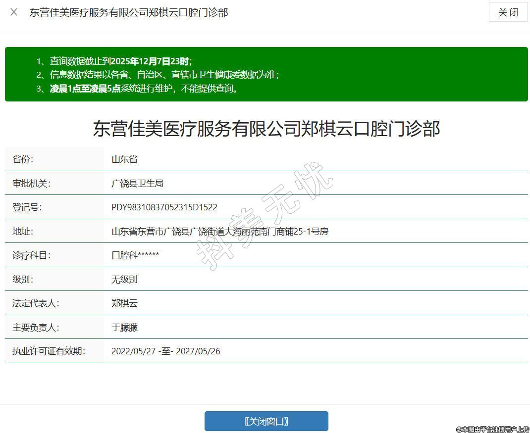 東營佳美醫(yī)療服務有限公司鄭棋云口腔門診部