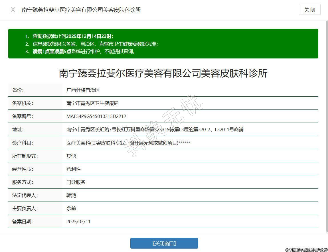 南寧臻薈拉斐爾醫(yī)療美容診所成立于2024年,位于南寧市青秀區(qū)長虹路7號長虹萬科里商場第S2S319棟第L3層的第320-2、L320-1號商鋪,是經(jīng)南寧市青秀區(qū)衛(wèi)生健康局備案的合規(guī)醫(yī)療美容機構(gòu),專注醫(yī)療美容科(美容皮膚科專業(yè)),限開展微創(chuàng)或無創(chuàng)項目,匯聚了涵蓋美容外科、皮膚美容等領(lǐng)域的專業(yè)醫(yī)護團隊,配備專業(yè)醫(yī)美設(shè)備,結(jié)合個性化診療思路,為顧客提供規(guī)范、安心的醫(yī)療美容服務(wù)。