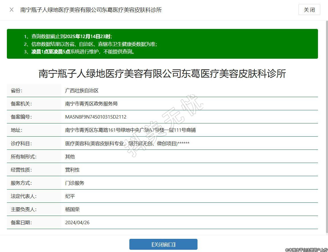 南寧瓶子人綠地醫(yī)療美容有限公司東葛醫(yī)療美容皮膚科診所
