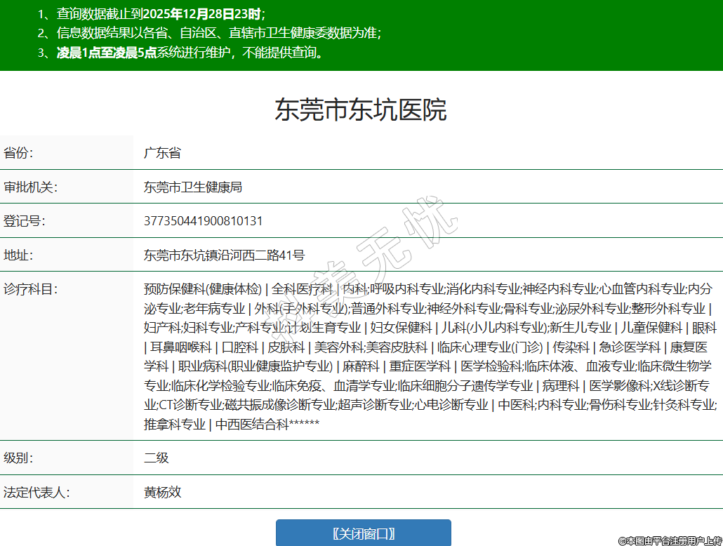 省份:廣東省審批機(jī)關(guān):東莞市衛(wèi)生健康局登記號(hào):377350441900810131地址:東莞市東坑鎮(zhèn)沿河西二路41號(hào)診療科目:預(yù)防保健科(健康體檢) | 全科醫(yī)療科 | 內(nèi)科;呼吸內(nèi)科專業(yè);消化內(nèi)科專業(yè);神經(jīng)內(nèi)科專業(yè);心血管內(nèi)科專業(yè);內(nèi)分泌專業(yè);老年病專業(yè) | 外科(手外科專業(yè));普通外科專業(yè);神經(jīng)外科專業(yè);骨科專業(yè);泌尿外科專業(yè);整形外科專業(yè) | 婦產(chǎn)科;婦科專業(yè);產(chǎn)科專業(yè);計(jì)劃生育專業(yè) | 婦女保健科 | 兒科(小兒內(nèi)科專業(yè));新生兒專業(yè) | 兒童保健科 | 眼科 | 耳鼻咽喉科 | 口腔科 | 皮膚科 | 美容外科;美容皮膚科 | 臨床心理專業(yè)(門診) | 傳染科 | 急診醫(yī)學(xué)科 | 康復(fù)醫(yī)學(xué)科 | 職業(yè)病科(職業(yè)健康監(jiān)護(hù)專業(yè)) | 麻醉科 | 重癥醫(yī)學(xué)科 | 醫(yī)學(xué)檢驗(yàn)科;臨床體液、血液專業(yè);臨床微生物學(xué)專業(yè);臨床化學(xué)檢驗(yàn)專業(yè);臨床免疫、血清學(xué)專業(yè);臨床細(xì)胞分子遺傳學(xué)專業(yè) | 病理科 | 醫(yī)學(xué)影像科;X線診斷專業(yè);CT診斷專業(yè);磁共振成像診斷專業(yè);超聲診斷專業(yè);心電診斷專業(yè) | 中醫(yī)科;內(nèi)科專業(yè);骨傷科專業(yè);針灸科專業(yè);推拿科專業(yè) | 中西醫(yī)結(jié)合科******級(jí)別:二級(jí)法定代表人:黃楊效主要負(fù)責(zé)人:黃楊效執(zhí)業(yè)許可證有效期:2025/02/07 -至- 2029/02/20 -