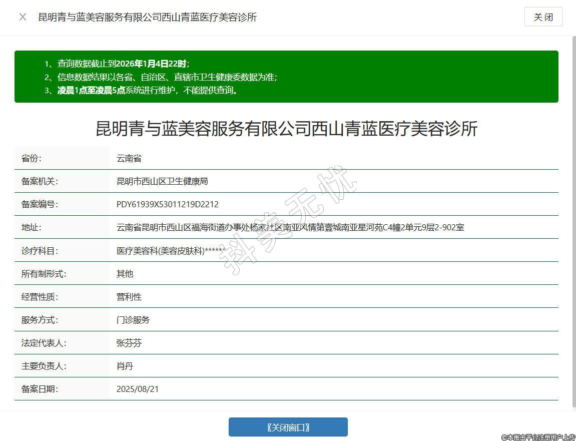 昆明青與藍美容服務有限公司西山青藍醫(yī)療美容診所