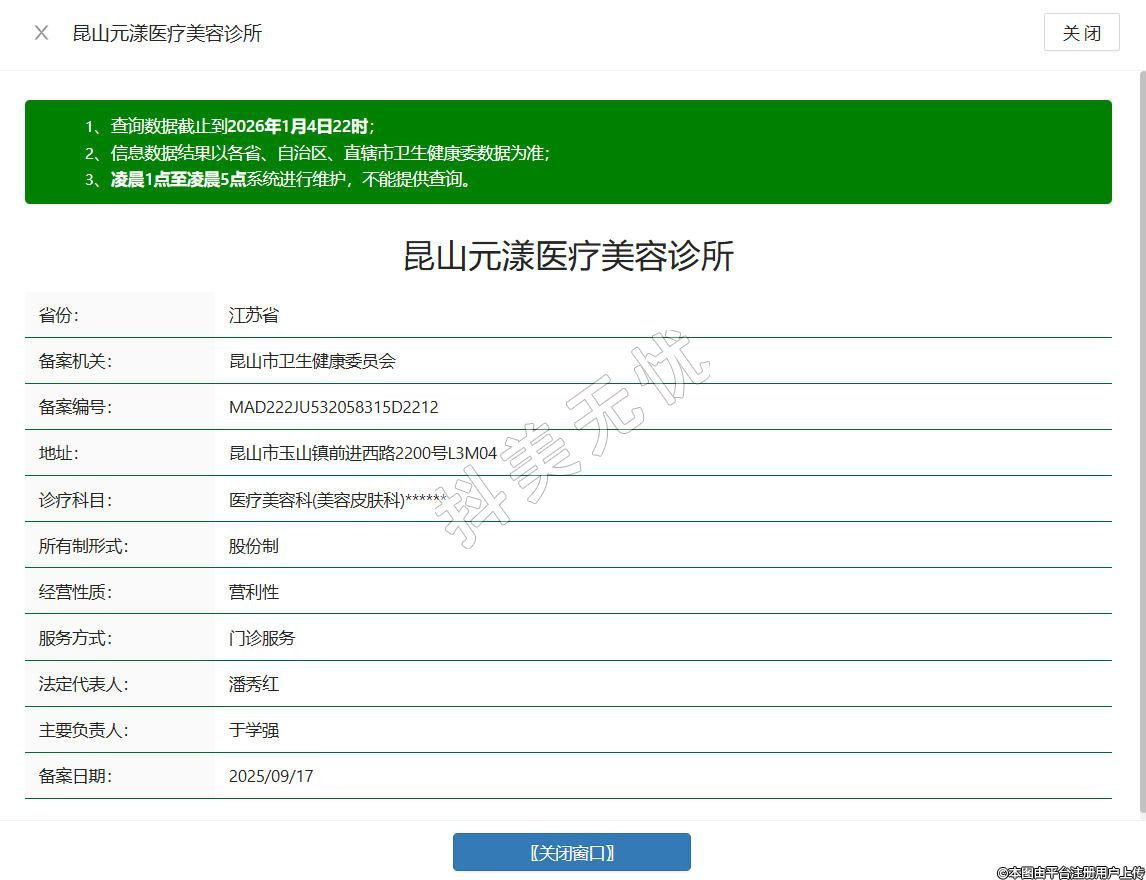 昆山元漾醫(yī)療美容診所成立于2023年,位于江蘇省蘇州市昆山市玉山鎮(zhèn)前進西路2200號L3M04,是經相關部門批準設立的合規(guī)醫(yī)療美容機構,業(yè)務涵蓋許可范圍內的醫(yī)療美容服務、生活美容服務,同時提供健康咨詢、非醫(yī)療類養(yǎng)生保健等配套服務,秉持合規(guī)經營理念,注重服務透明化與消費者權益保護,所有服務項目均依法依規(guī)開展。