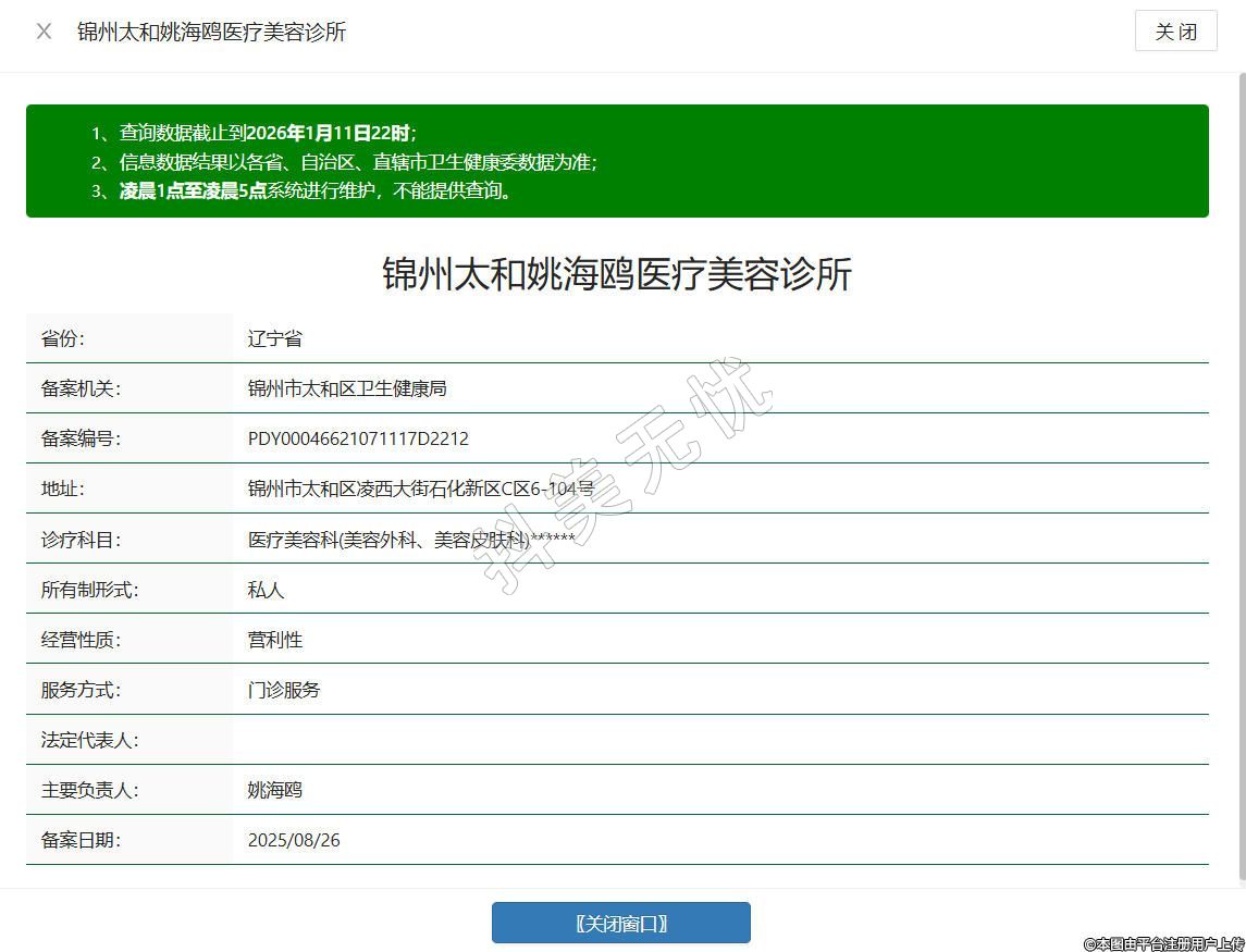 錦州太和姚海鷗醫(yī)療美容診所成立于2025年,位于遼寧省錦州市太和區(qū)凌西大街石化新區(qū)C區(qū)6-104號,是經(jīng)相關(guān)部門批準設(shè)立的合規(guī)醫(yī)療機構(gòu),開展雙眼皮、開眼角、隆鼻、鼻部整形及修復(fù)等項目,嚴格遵循醫(yī)療美容服務(wù)規(guī)范,證照齊全、合規(guī)經(jīng)營,診療范圍符合備案要求。