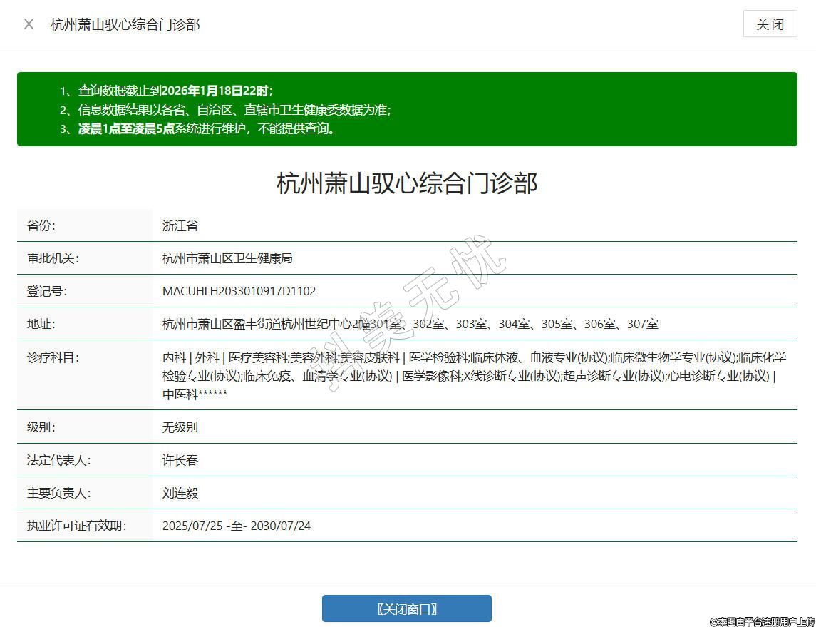 杭州蕭山馭心綜合門診部