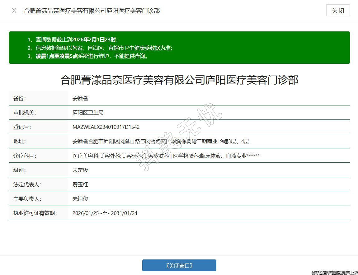 合肥菁漾品奈醫(yī)療美容有限公司廬陽醫(yī)療美容門診部