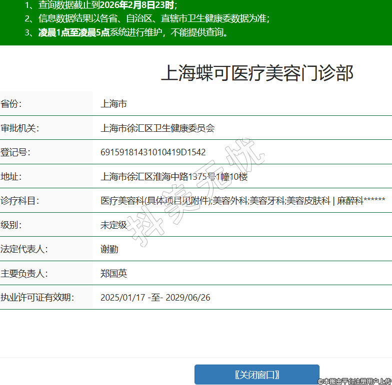 上海蝶可醫(yī)療美容門診部創(chuàng)辦于2009年,坐落于上海市徐匯區(qū)淮海中路1375號(hào)啟華大廈F10層,地理位置優(yōu)越,交通便捷。門診部設(shè)有美容外科、皮膚美容科、牙齒美容科等核心科室,同時(shí)涵蓋一類醫(yī)療器材、美容儀器及化妝品銷售等相關(guān)服務(wù),嚴(yán)格遵循行業(yè)規(guī)范,依法合規(guī)開展各項(xiàng)經(jīng)營(yíng)活動(dòng)。門診部注重診療規(guī)范與顧客體驗(yàn),堅(jiān)守醫(yī)療美容行業(yè)底線,收費(fèi)透明、服務(wù)周到,專注為顧客提供全面的美容相關(guān)服務(wù),在當(dāng)?shù)蒯t(yī)美行業(yè)保持著良好的經(jīng)營(yíng)口碑。