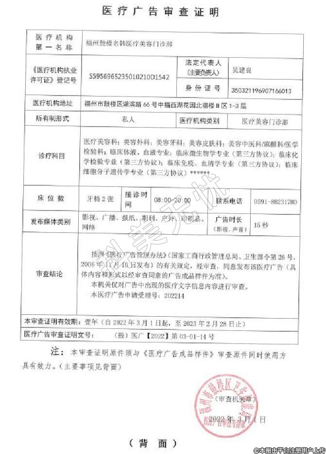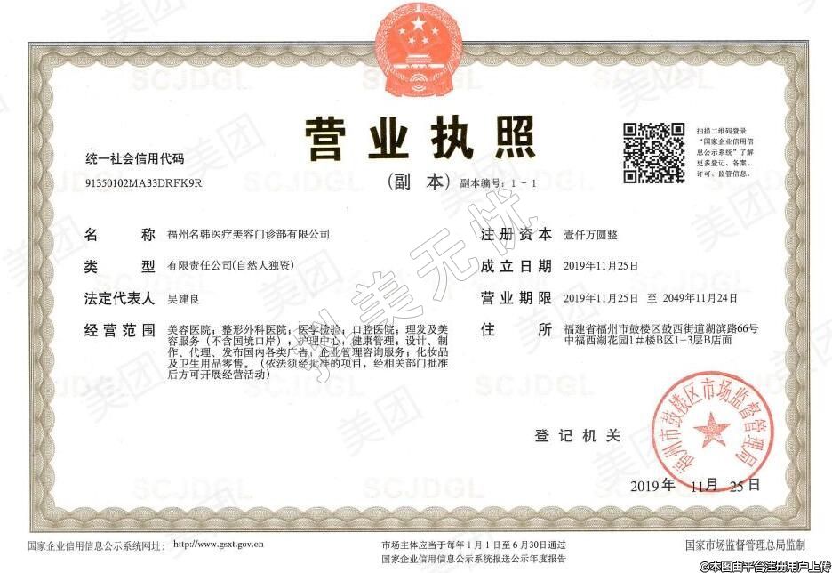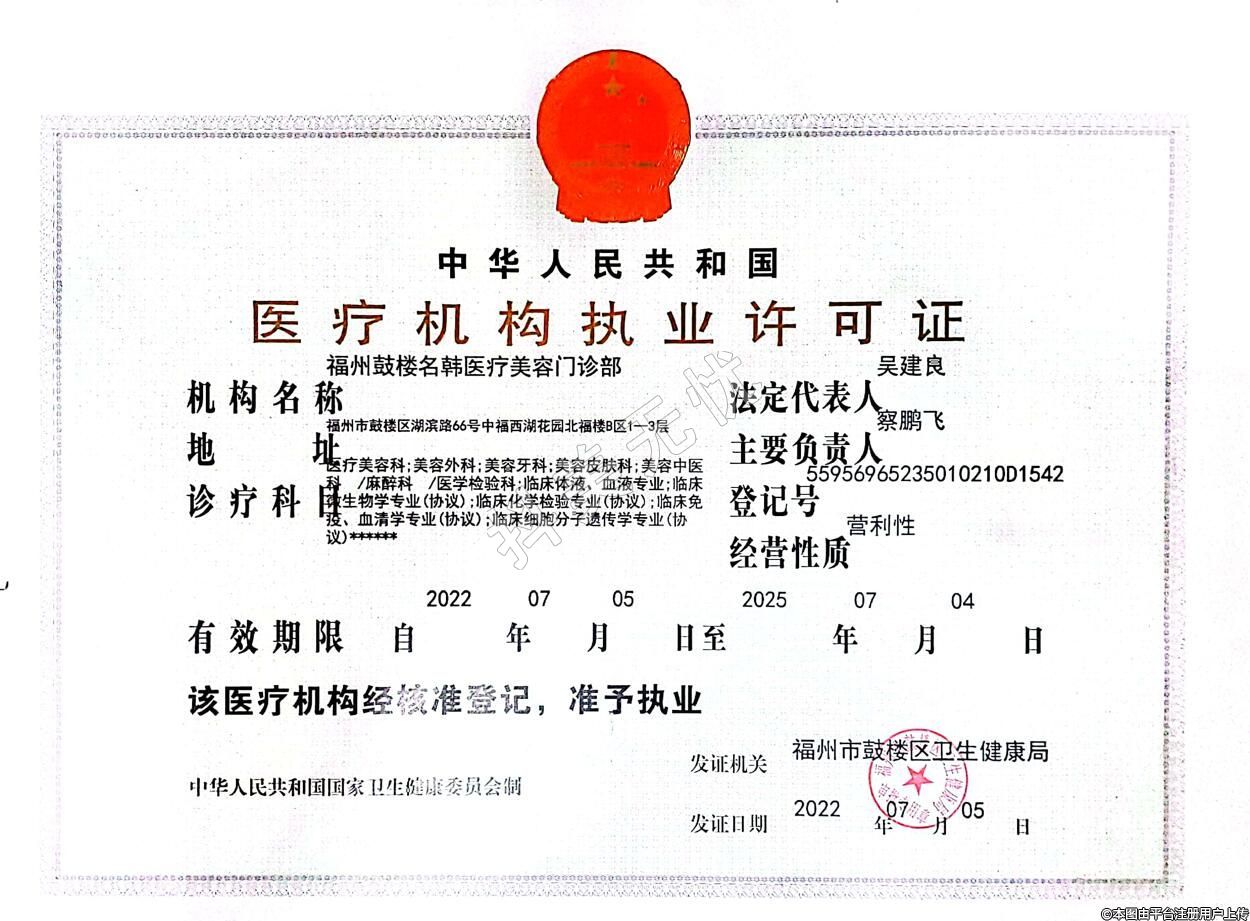 發(fā)證機關(guān):福州市鼓樓區(qū)衛(wèi)生健康局