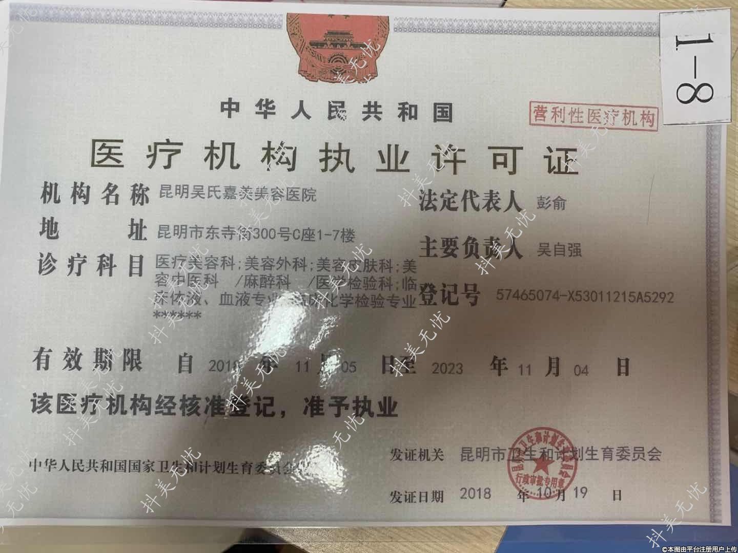 發(fā)證機關:昆明市衛(wèi)生和計劃生育委員會