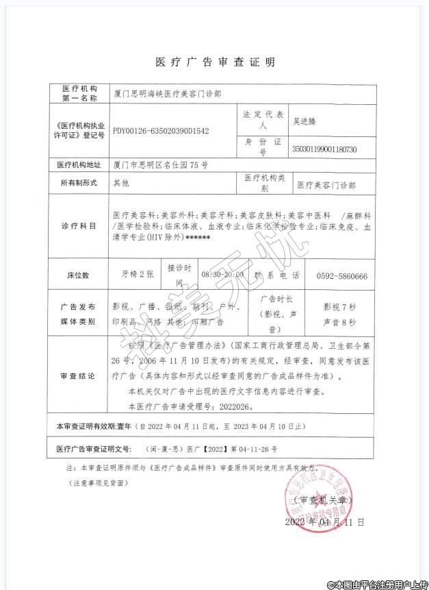 發(fā)證機關(guān):廈門市思明區(qū)衛(wèi)生健康局