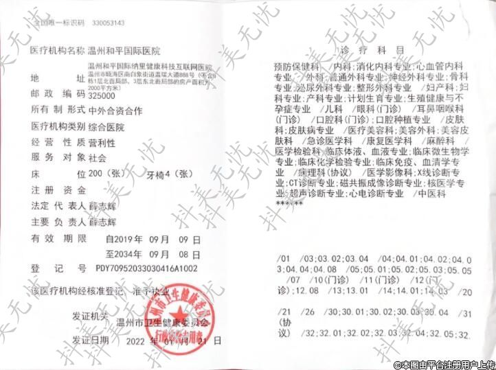 醫(yī)療機(jī)構(gòu)名稱:溫州和平國際醫(yī)院