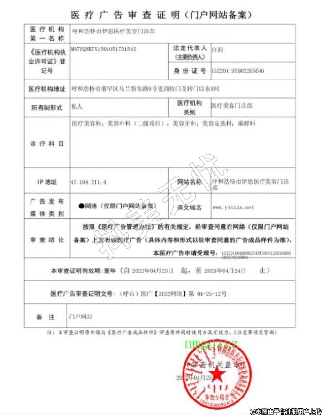 機構(gòu)名稱:呼和浩特伊思美容醫(yī)療美容門診部