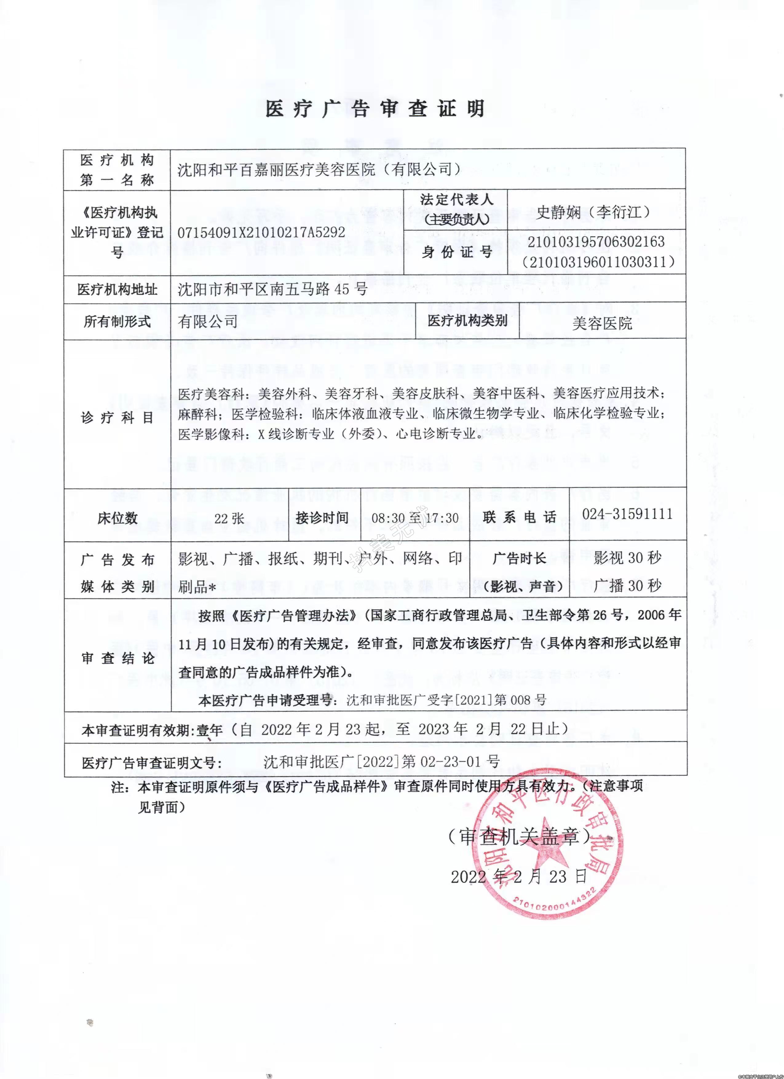 機(jī)構(gòu)名稱:沈陽和平百嘉麗醫(yī)療美容醫(yī)院(有限公司)