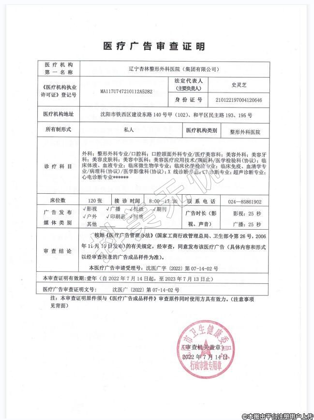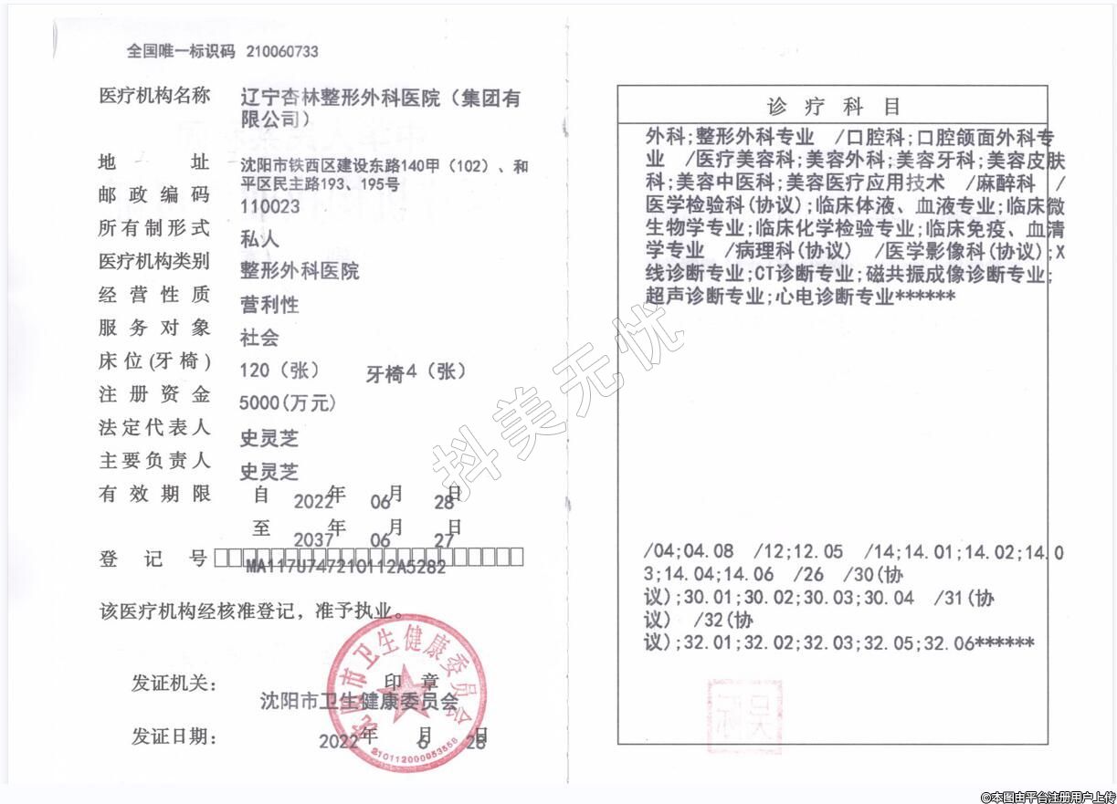 醫(yī)療機構(gòu)名稱:遼寧杏 林整形外科醫(yī)院(集團有限公司)