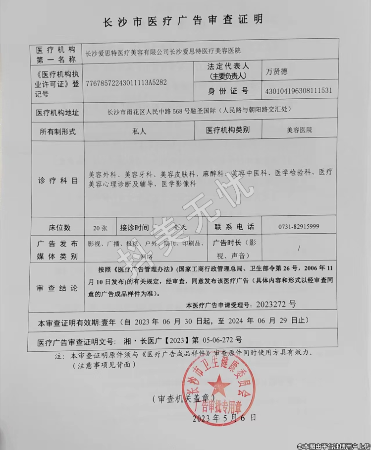 機(jī)構(gòu)名稱:長沙愛思特醫(yī)療美容有限公司長沙愛思特醫(yī)療美容醫(yī)院