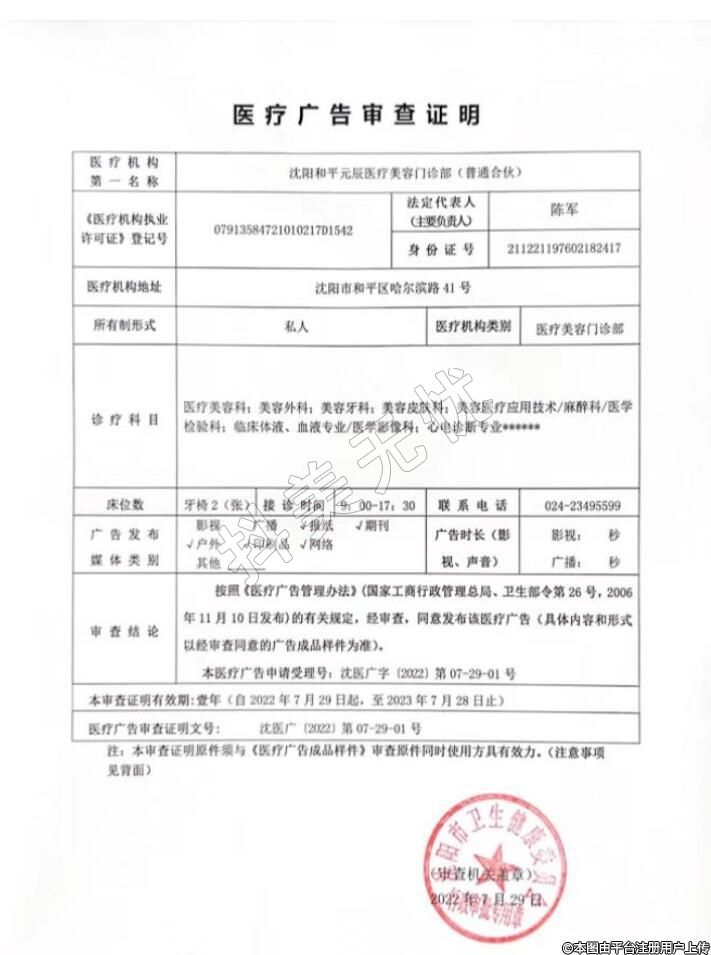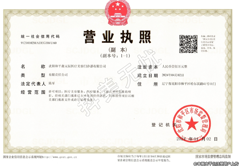 機(jī)構(gòu)名稱:沈陽(yáng)和鑫平元辰醫(yī)療美容門診部(有限公司)