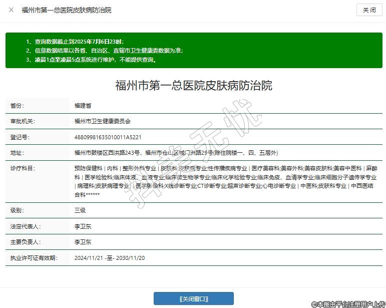 預防保健科 | 內(nèi)科 | 整形外科專業(yè) | 皮膚科;皮膚病專業(yè);性傳播疾病專業(yè) | 醫(yī)療美容科;美容外科;美容皮膚科;美容中醫(yī)科 | 麻醉科 | 醫(yī)學檢驗科;臨床體液、血液專業(yè);臨床微生物學專業(yè);臨床化學檢驗專業(yè);臨床免疫、血清學專業(yè);臨床細胞分子遺傳學專業(yè) | 病理科(皮膚病理專業(yè)) | 醫(yī)學影像科;X線診斷專業(yè);CT診斷專業(yè);超聲診斷專業(yè);心電診斷專業(yè) | 中醫(yī)科;皮膚科專業(yè) | 中西醫(yī)結合科******