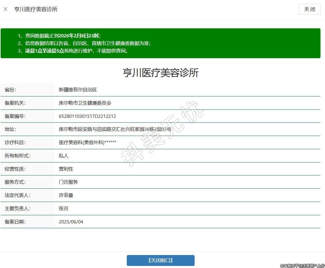 烏魯木齊亨川醫(yī)療美容診所于2024年成立,地處于新疆烏魯木齊市(第十二師)新市區(qū)104團(tuán)常州街111號(hào)新天潤(rùn)國(guó)際社區(qū)三期(B區(qū))47號(hào)底商住宅樓商業(yè)119室、219室。