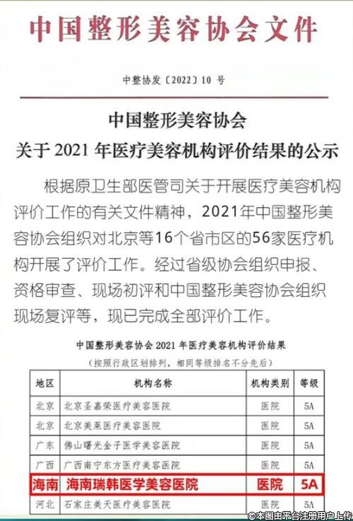 很榮幸,2021年海南瑞韓醫(yī)療美容就榮獲5A級機構的評定結果!