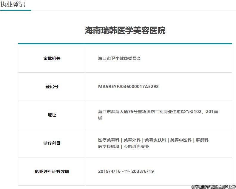 海南瑞韓醫(yī)療美容證照信息