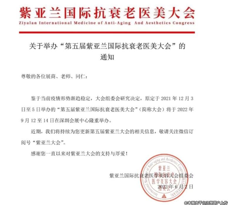 關于舉辦“第五屆紫亞蘭國際抗衰老醫(yī)美大會”的通知