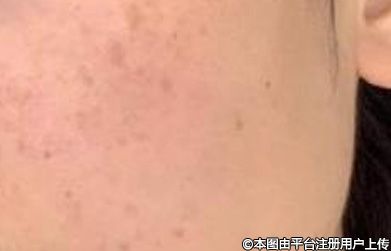 主要集中分布在顴骨部位,暴曬后皮膚曬傷,開始時斑點呈紅色橢圓形,微微隆起,數(shù)日后變成一塊塊褐色斑點。