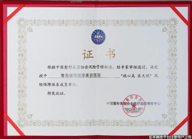 近日,青島諾德醫(yī)學美容醫(yī)院憑借良好口碑、專業(yè)技術、規(guī)范標準,從全國眾多醫(yī)美機構中脫穎而出,正式成為中國整形美容協(xié)會“放心美 醫(yī)無憂”風險保障體系成員單位!