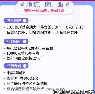 我是星女郎,柳州華美案例招募活動(dòng)正在進(jìn)行中,報(bào)名一經(jīng)入選,即可享受0元打造的脂肪、胸、眼等美容整形,報(bào)名還有福利拿,愛(ài)美者趕緊來(lái)吧!